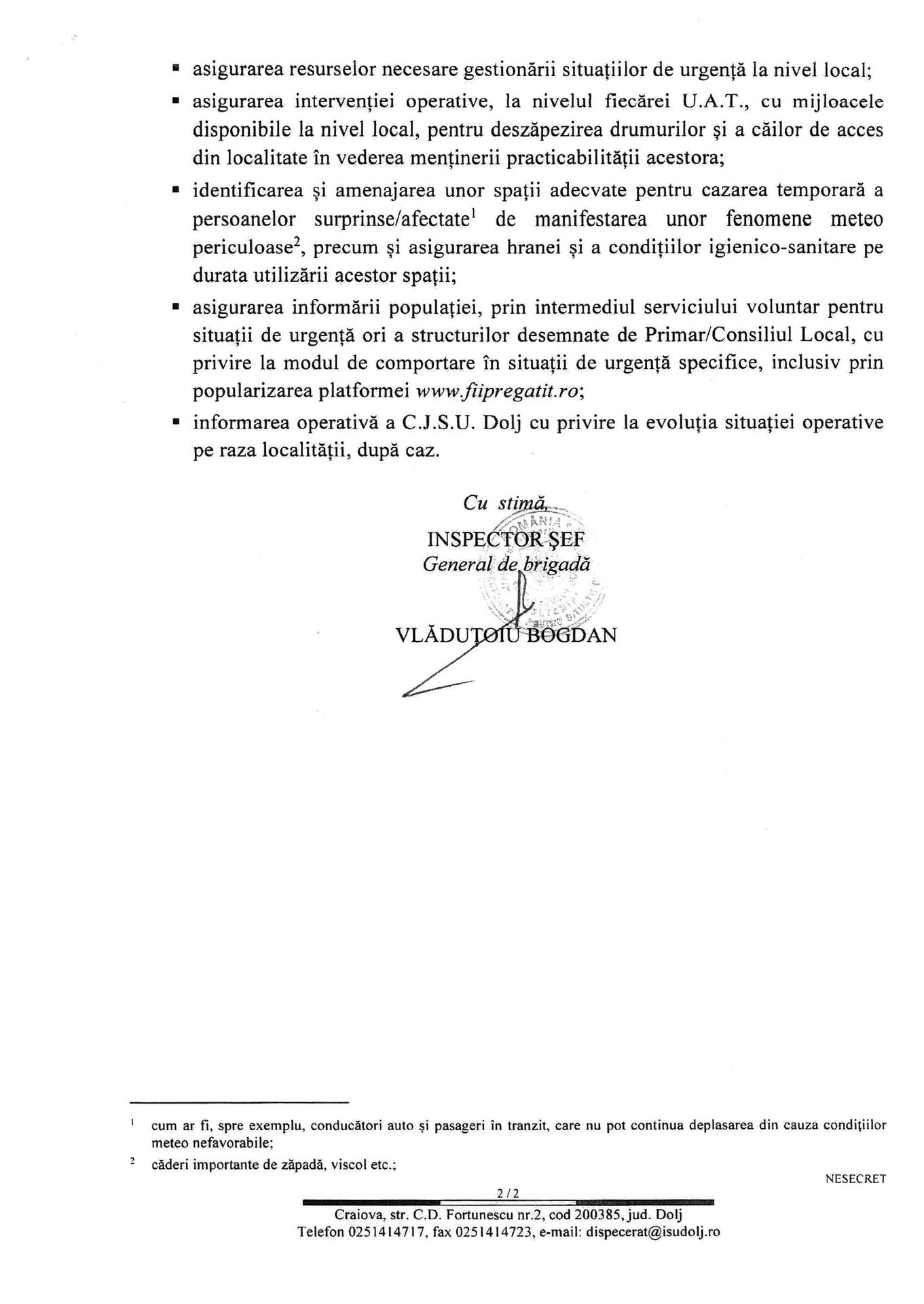Atentionare meteorologica COD GALBEN: ninsori moderate cantitativ si local strat de zapada. Valabilitate: 17.03, ora 23:00 - 18.03, ora 12:00. ISU DOLJ